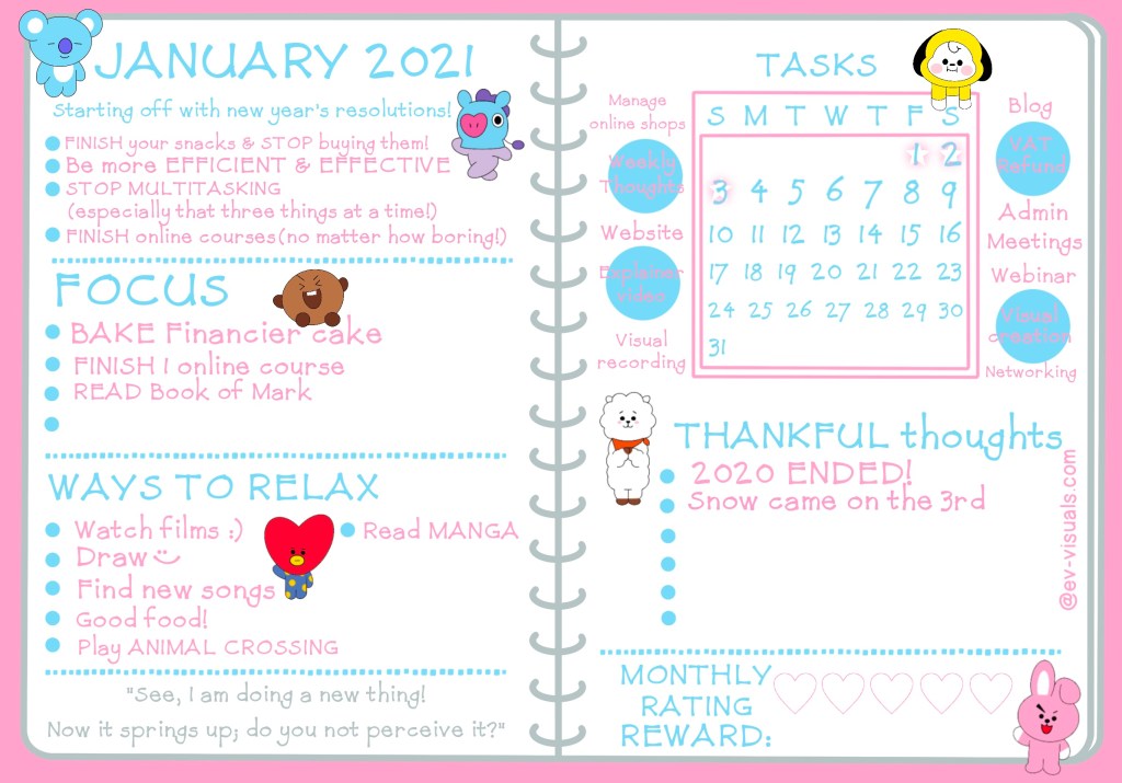 A monthly planner is always a good thing. It keeps us organised and helps us see what the month has in-stored for us. Moreover, a planner allows us to monitor where we are at. But most importantly, it gives us control and let us manage expectations better. I can clearly see when I’m trying to overwork myself and try to cut down on some tasks. This helps minimize frustrations.