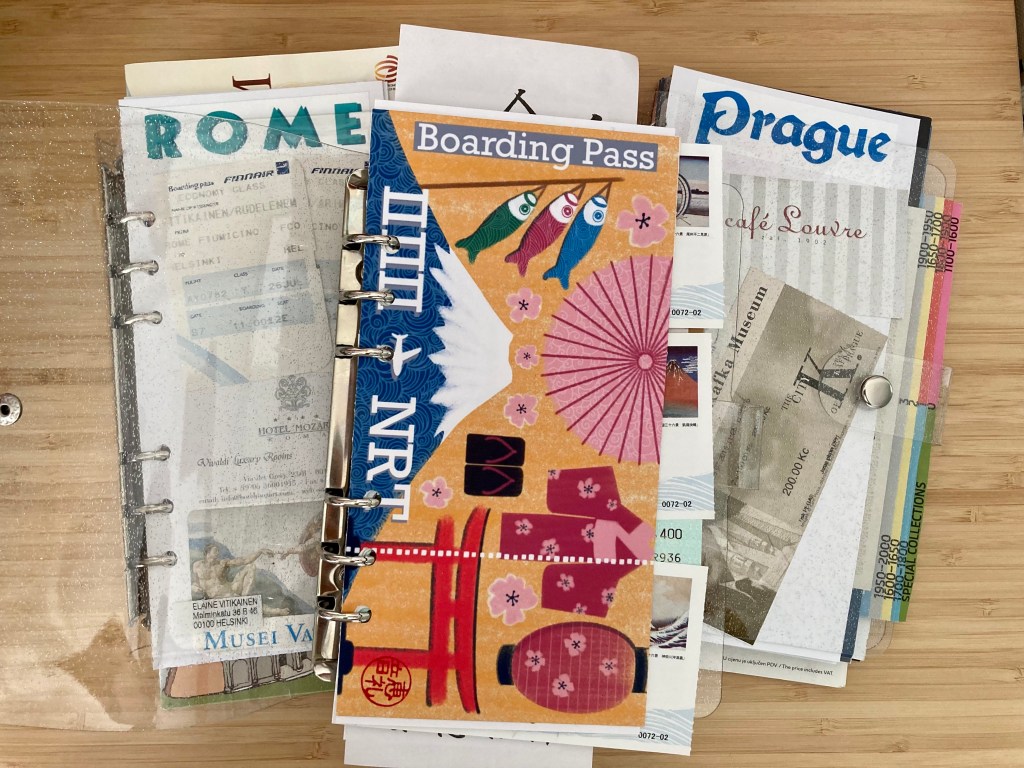 Having visited 50 countries, at one point I have so many of these – boarding passes, travel tickets, museum tickets, business cards, postcards, brochures, maps, receipts… I didn’t exactly know what to do with them that I started to throw them away until I thought that why not try scrapbooking.