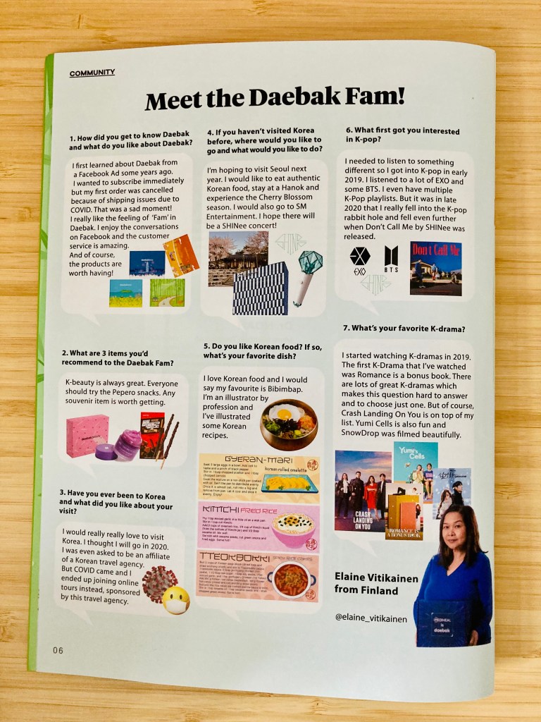 It’s the time of the year to receive the Daebak Summer box. Wow this is so Daebak! I was even featured in the magazine. 🙂